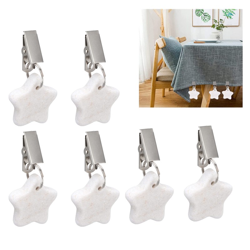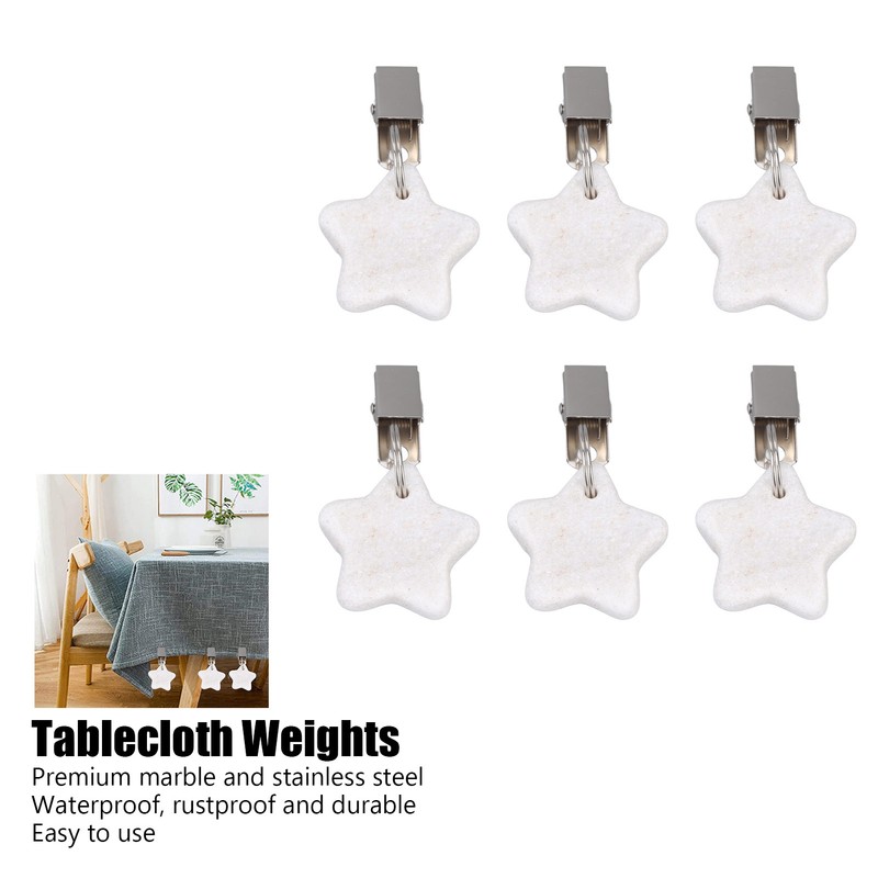 6Pcs Tablecloth Weights Marble Stainless Steel Small Size Waterproof Rustproof Durable Clip On Weights for Party PicnicStar