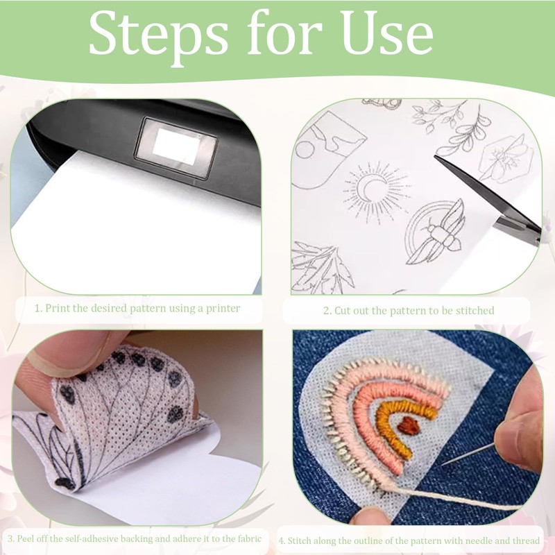 - Easy to Use: Remove the protective paper on the back of the stabilizer for embroidery and stick the adhesive side to the back of the fabric, preventing the fabric from wrinkling or shifting, and ensuring that the embroidery threads are flat and even