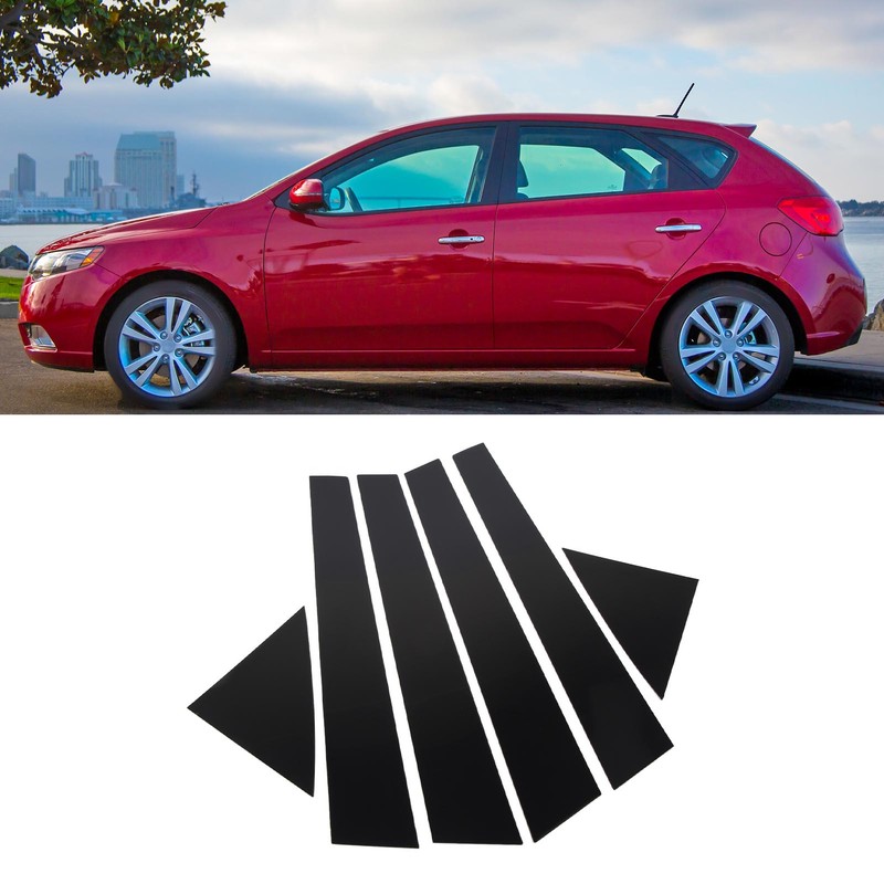 6pcs Window Pillar Post Trim Anti Scratch Glossy Black B Pillar Cover Sticker Replacement for Kia Forte 2009 to 2012