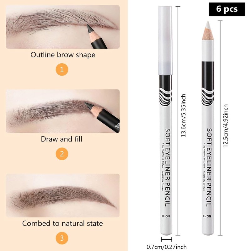 6Pcs wooden hard-core eyebrow pencils, eyebrow and eyeliner pencils, waterproof and sweat-proof eyebrow pencils for beginners, White eyebrow pencils, White eyeliner pencils