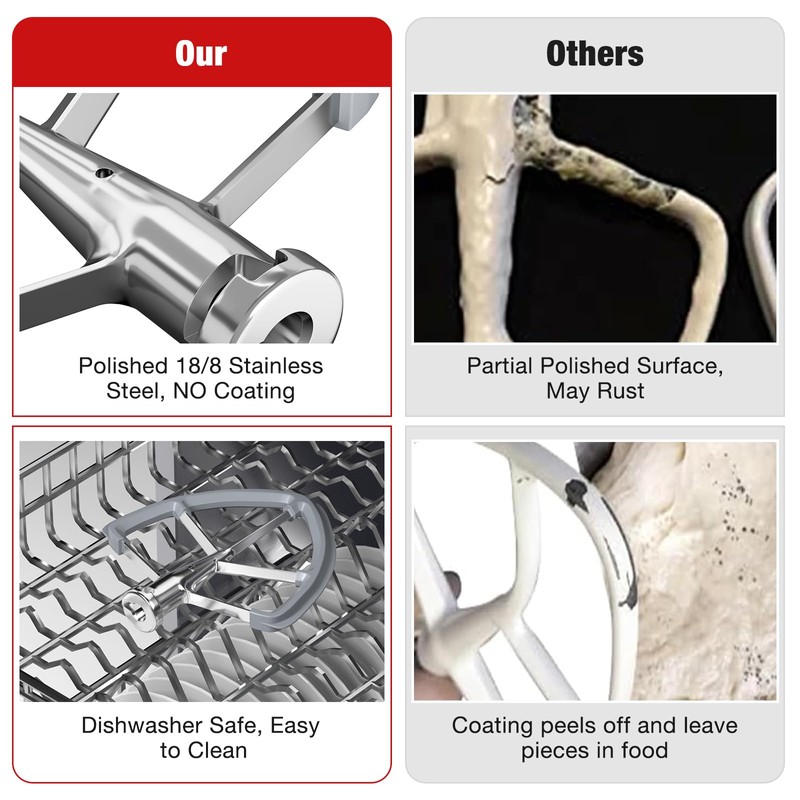 • [Efficient Cleaning]: Cleaning this kitchen aid paddle attachment for stand mixer is very simple! Mirror polished surface, stainless steel texture, while reducing the adhesion of residual food, you only need to gently wash with mild soapy water, and then rinse with water. Whether it is hand wash or put Easy to put in the dishwasher.