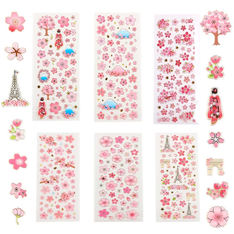 - Abundant Quantity and Size: Contains 6 Sheet Stickers of Different Patterns, Rich in Size, There are Small and Delicate Single Cherry Blossom Pattern Stickers, Easy to Use For Embellishing; There Are Also Larger Size Cherry Blossom Scene Stickers, Which Can Be Used as the Main Decorative Element of the Ledger Page to Meet Your Diverse Design Needs.