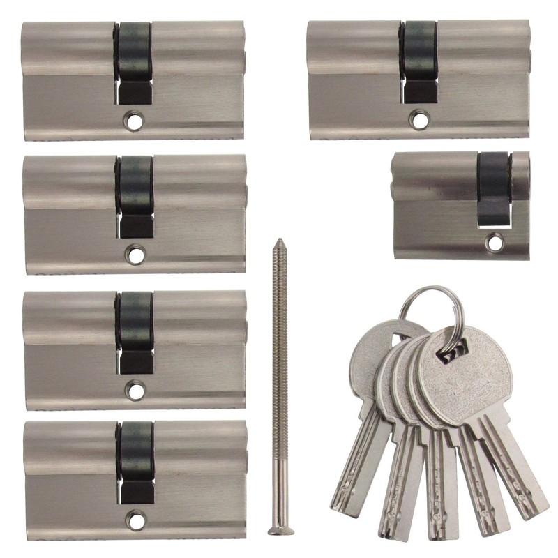 6x Cylinder Lock Keyed Alike 5x 60 mm 30/30 Double Cylinder 1x 40 mm 30/10 Half Cylinder with 10 Keys