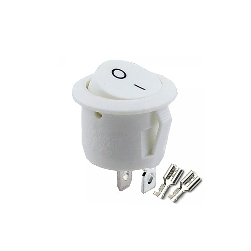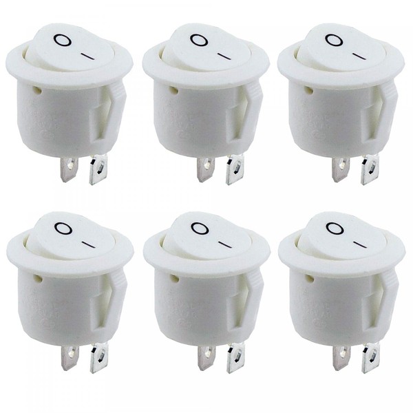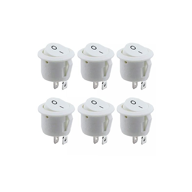 6x Kippschalter Wippschalter 2 polig rund, Rot Schwarz Weiß ON/OFF 6A/250V Kunststoff push Button Switch | weiß