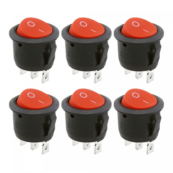6x Kippschalter Wippschalter 3 polig rund, Rot Schwarz Weiß ON/OFF 6A/250V Kunststoff push Button Switch Schalter | schwarz-rot