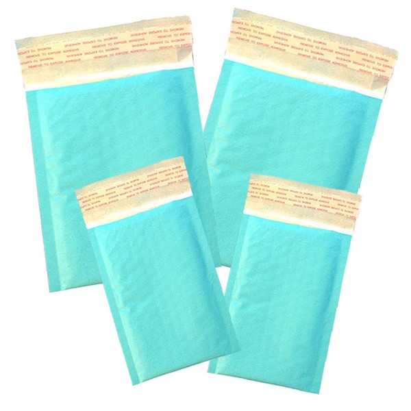 6x10 & 4x8 Combo Pack Both Sizes, Pink & Aqua Kraft Self Seal Rigid Padded Envelope Bubble Mailers. (#0 6x9, 000 4.25x7 usable space Poly Inner Lining (All Aqua, 10 Pack)