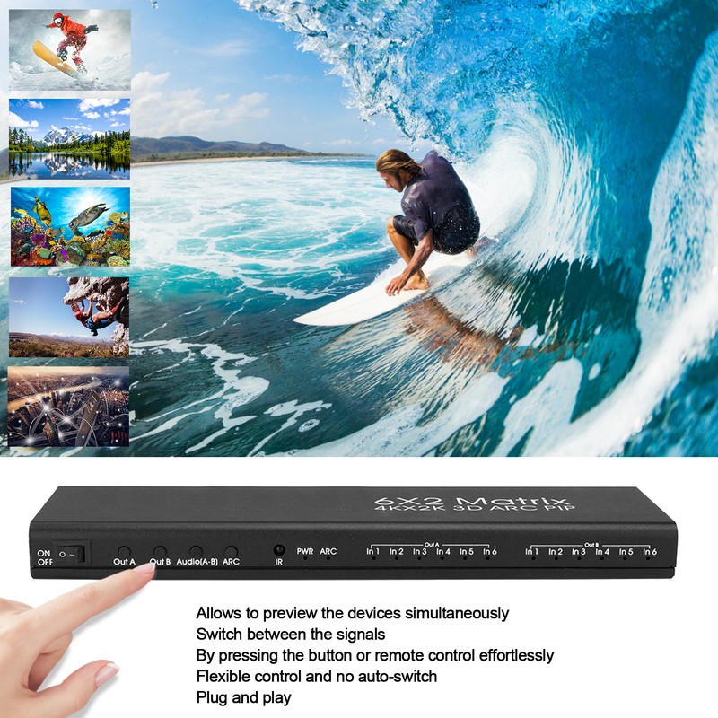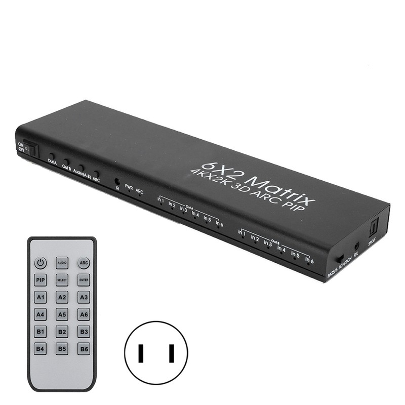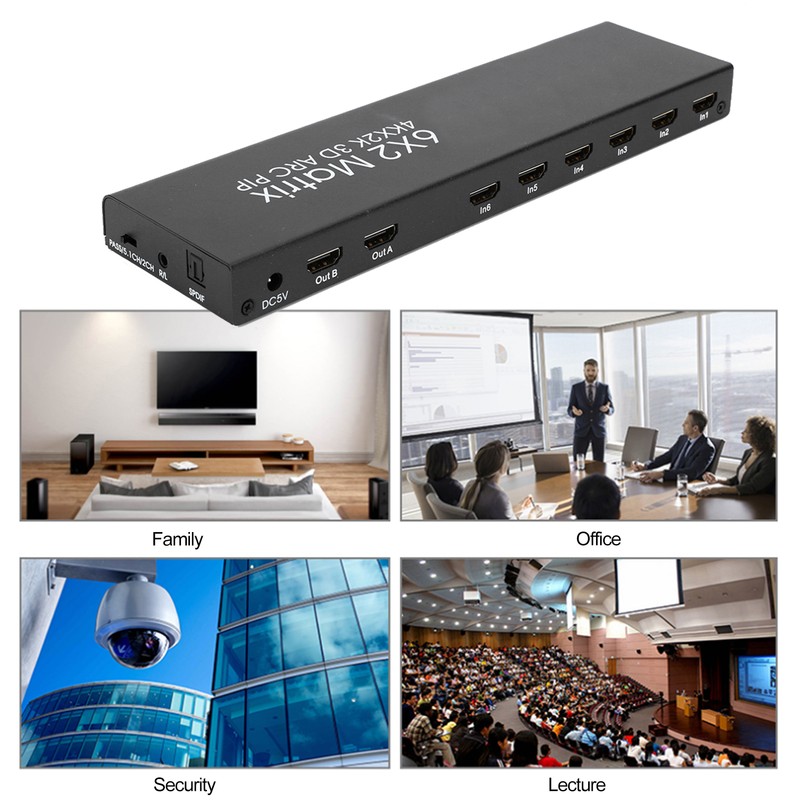 6x2 HDMI Matrix Adapter Flexible Control Support for PIP ARC Function 4K/30HZ 100‑240VUS
