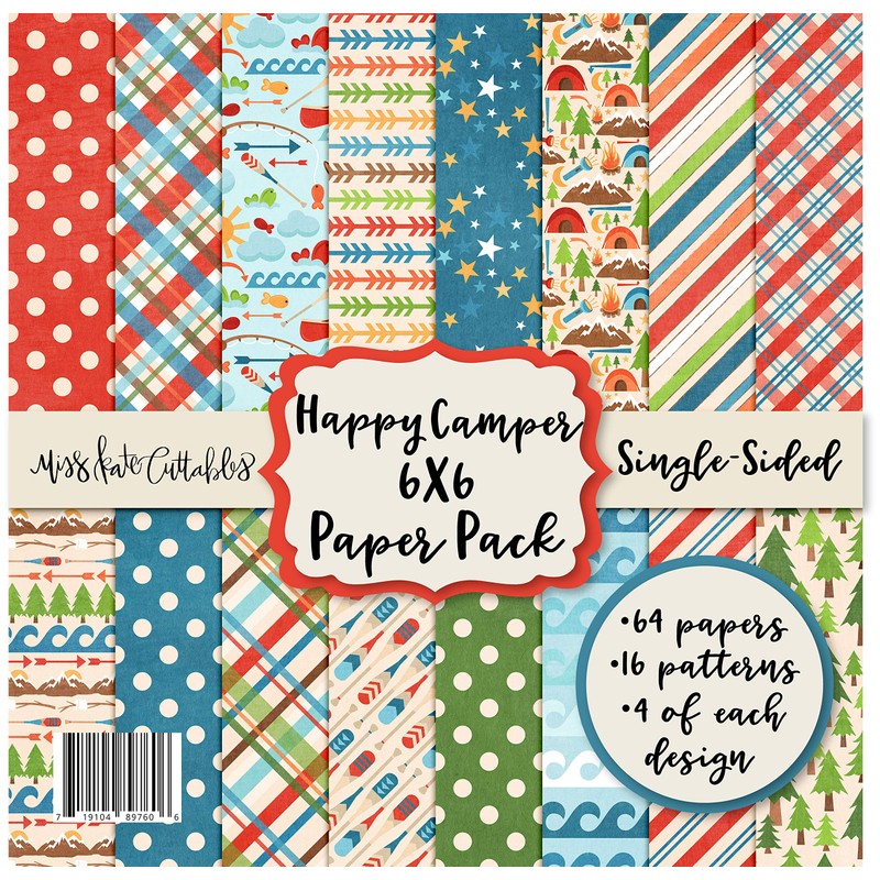 6X6 Pattern Paper Pack - Happy Camper - Card Making Scrapbook Specialty Paper Single-Sided 6"x6" Collection Includes 64 Sheets - by Miss Kate Cuttables