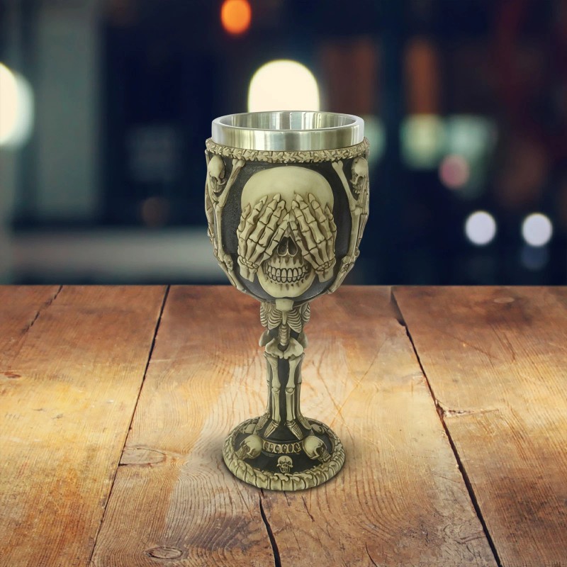 7.5"H Skull 3-No-Evil Goblet Ornament Home Decor Unique Gift