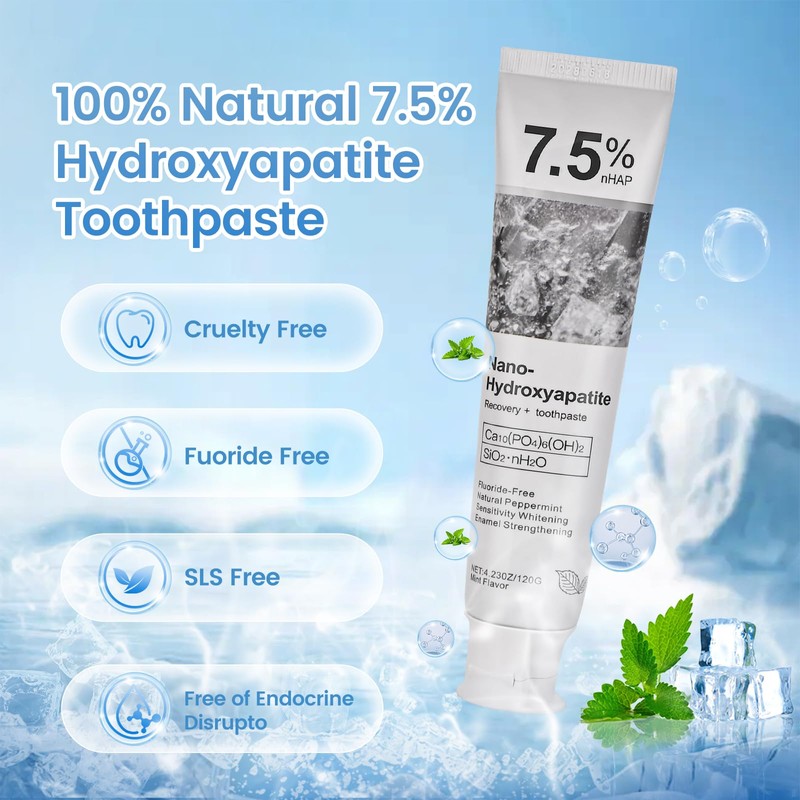 - 🦷Advanced Enamel Restoration - Powered by 7.5% Hydroxyapatite (NanoHAP), this toothpaste mimics your enamel’s natural mineral structure to repair micro-cracks, strengthen teeth, and protect against sensitivity.