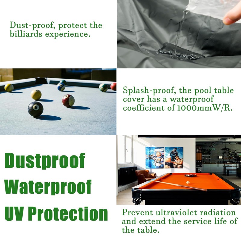 - 【High Quality】: Billiard pool table cover is made of high-quality 420D Oxford cloth, strong and durable, waterproof, dustproof and UV-resistant, saves you time cleaning the table.