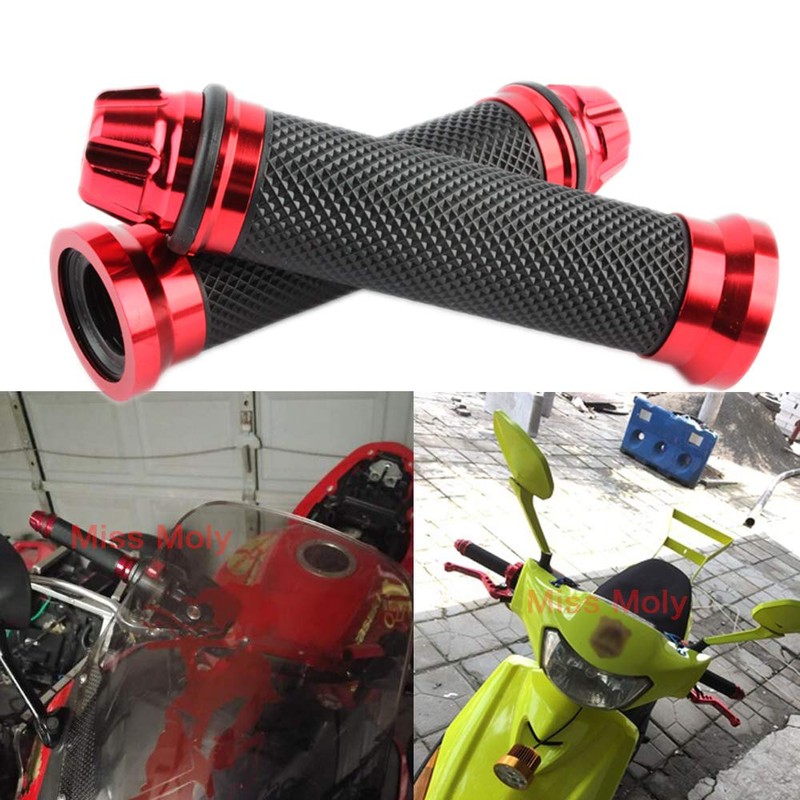 7/8 Inch 22 mm Motorcycle Grips Non-Slip Rubber Handlebar Grips (Red)
