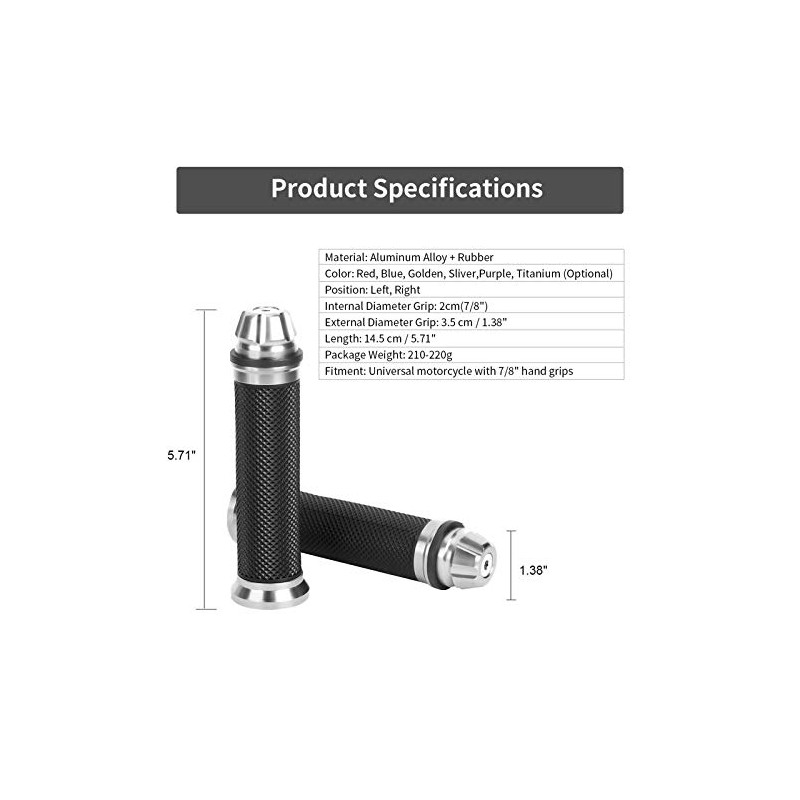 - ¡¾Universal Fitment & Warm Prompt¡¿-- CNC Aluminum rubber hand grip suitable for most of motorcycles or some kinds of bikes hand grips with 7/8'' Please check your bike handal size before ordering. Much appreciate it