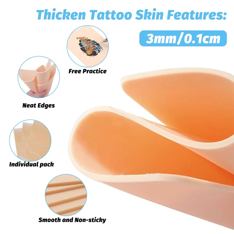 - Safe, Durable & Reusable:Made from safe and harmless rubber, these tattoo skins offer excellent stretchability and are unlikely to tear during use. They mimic the texture and feel of human skin, being durable and reusable, making them perfect for tattoo practice before working on real clients