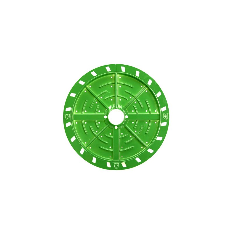 The FloraFlex® Matrix System is a patent pending first of its kind Top Feeding Wicking System that provides the most even way to deliver water and nutrients to your potted plants. It can be used with pots ranging from 7.5-18 inch diameters. You will need a Matrix unit, the same size Matrix Pad (optional), and the correlating Matrix Circulator. Water and nutrients travel into the Circulator, hit the slope of the Matrix and are pushed outward into eight maze sections that have individual holes dripping the water and nutrients onto the Wicking Pad. There are eight slices to the pie, each section is fed the same amount, going through the maze for even distribution. The Matrix pad is a capillary mat used for wicking. The system blocks light and keeps the top of your medium moist for a more even dry down. There are holes on the side to allow bamboo sticks for stabilization. The Matrix is reusable and can sit on top of or fit into your pot, just be sure all surfaces are touching.
