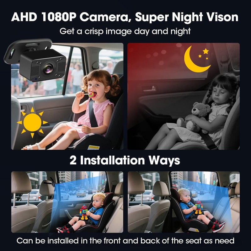 7" AHD Baby Car Camera w Apple CarPlay & Android Auto 1080P Car Camera for Baby with Ultra Night Vision 150° Wide Angle, Car Baby Monitor w Invisible Infrared Lights Easy to Install