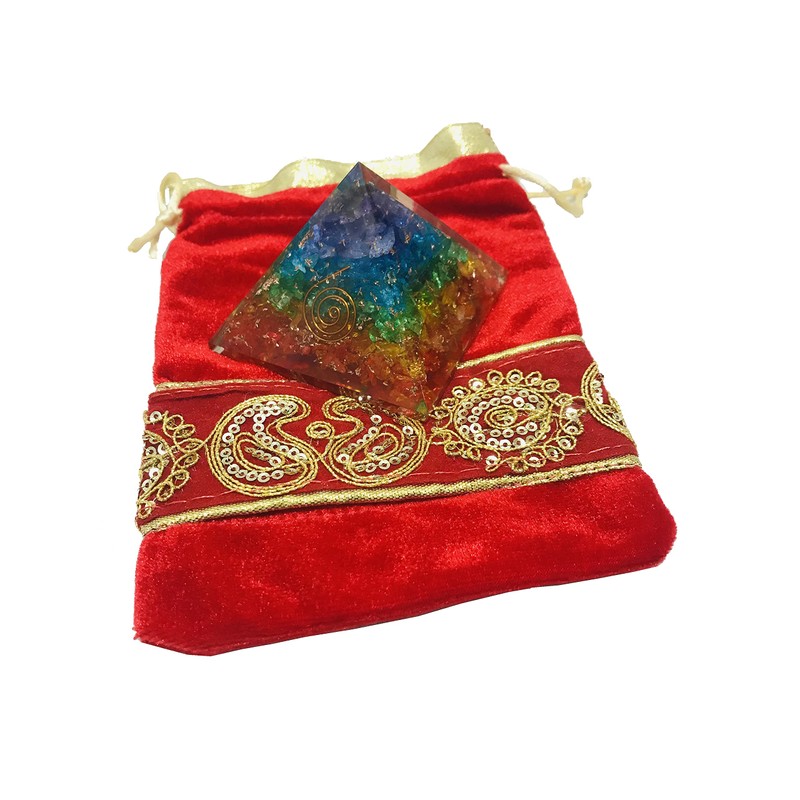 7 Chakra Rainbow Crystal Orgone Pyramid Healing Stone Crystal Chakra Pyramid EMF Protection Positive Energy Generator Orgonite Meditation, Spiritual Balance Stones 65-70 mm with Velvet Phouch
