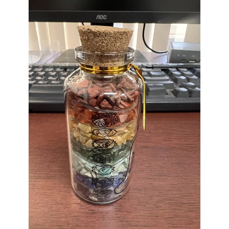 7 Chakra Stone Genuine Gemstone Chips in Beautiful Large 4" Display Bottle