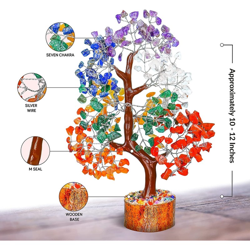 - Natural healing crystals and gemstones: with real crystals and gemstones. This Feng Shui tree is a holistic blend of 7 stones [Red Jasper, Carnelian, Clear Quartz, Green and Yellow Aventurine, Amethyst, Lapis Lazuli]. Seven chakras are considered energy wheels that provide us with energy all the time