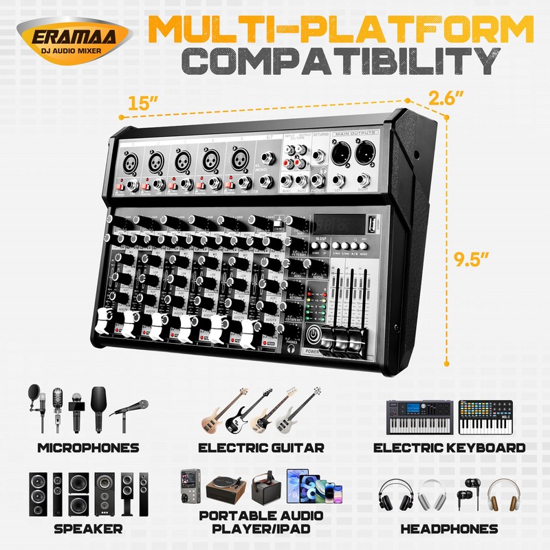 • Compact & User-Friendly: Designed for home users, this audio mixer is portable and simple to operate. Easy-to-use controls let anyone adjust sound levels and effects effortlessly
