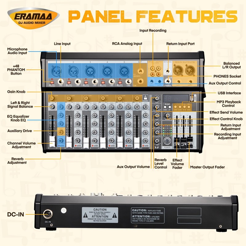 • Exciting Sound Effects & Pro Features: 16 built-in DSP effects, including reverb and echo, make every event more exciting. +48V phantom power supports condenser microphones for studio-quality sound