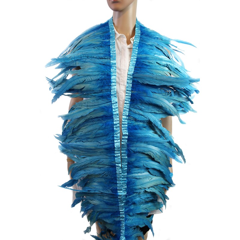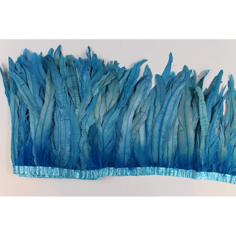 7 Color 2 Yard Long,10-12 inch Height Rooster Coque Feather Fringe Trim, for Skirt Dress Costume Roster Feather Trim (Turquoise)
