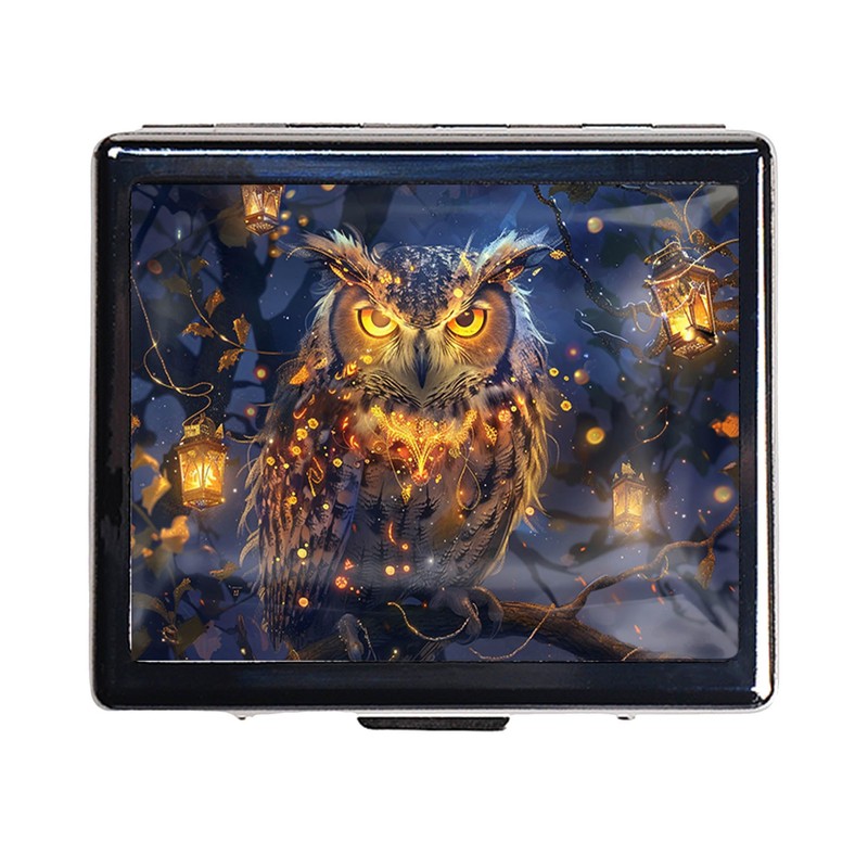7 Days Chromed Shiny Silver Pill Organizer with Mirror Inside Has 8 Separate Compartments Rectangle 7 Days Pill Box Pill Case (Owl in The Night)