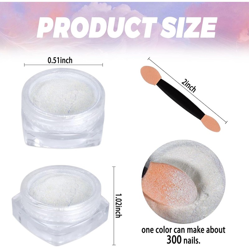 - 【Sie erhalten】7 Gläser weißes Chrom Nagelpulver und 7 Schwammstäbe. Mit dem Aurora Mirror Nail Powder können Sie zu Hause jeden gewünschten Manikürestil kreieren. Es erzeugt atemberaubende Farbveränderungen, ähnlich den Pearlescent Aurora Glaze-Nägeln, wodurch Ihre Nägel glänzender und neuer werden