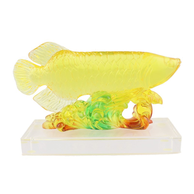 - The overall dimension of this Yellow Arowana Fish Statue on Glass Base is approx. 7"(L) x 2.375"(W) x 5"(H).
