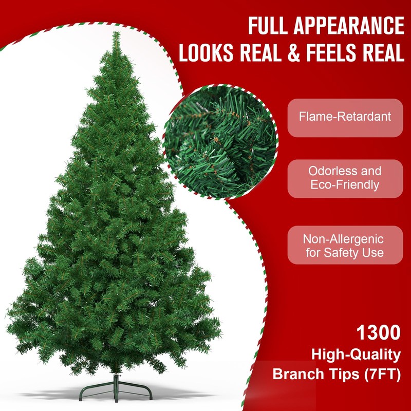 7 Ft Artificial Christmas Tree for Home, Office and Party Decoration, Holiday Xmas Tree with 1300 Branch Tips, Metal Hinges & Foldable Base