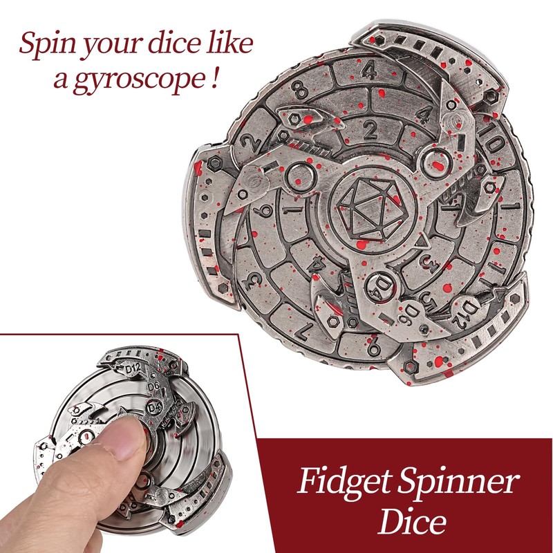 7-in-1 DND Dice Spinner Roulette Dice Fingertip Gyro, Dungeons and Dragons Metal Dice Starter Set with Gift Box Spinning Games, Rotating Fidget Dice Set for RPG MTG Table Games (Bloodstain)