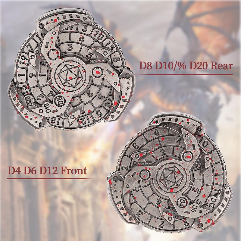 - Dice Materail: Made of zinc alloy. This Roulette Dice combine D4, D6, D8, D10, D12, D20 and D% all in one Roulette. you can easily get your lucky number in just a spin. Not only a dice, but also a fidget object in your travel.