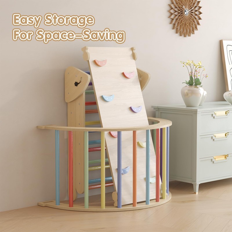 - Versatile Play Options: CMFYDAILY 7 in 1 Pikler Triangle Set includes Triangle ladder, Slide & Arch ladder, offering seven or more play configurations. From creating castles, climbing adventures, sliding fun, rocking excitement, to cozy tents, or using each piece individually.