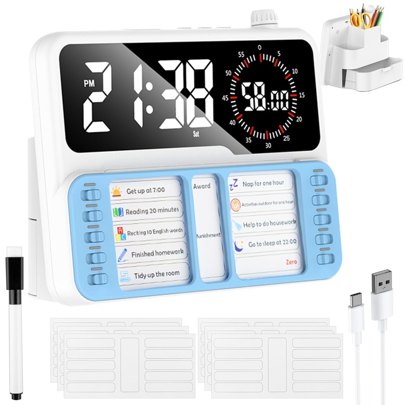7-in-1 Visual Timer for Kids and Adults, ADHD Planner with 12/24 Hour Visual Timer, Planning Board, Countdown, Alarm Clock, Calendar, Temperature Display, Storage Area, Autism & ADHD Tools