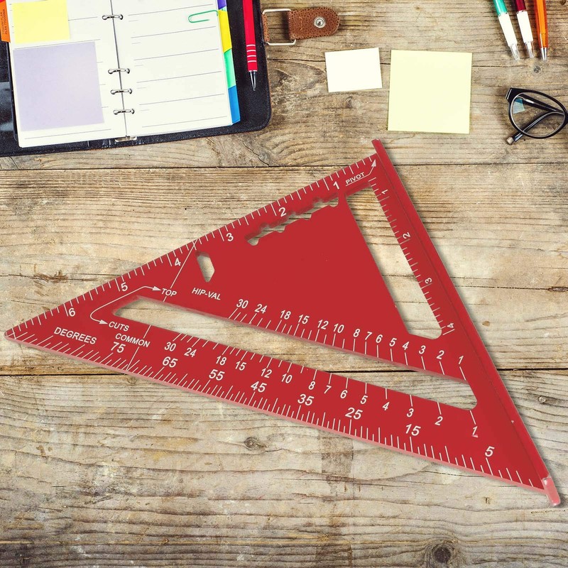 The triangle ruler can be used as a protractor,miter,line scriber saw guide,framing square and a ruler,ideal for all building and remodeling projects.
