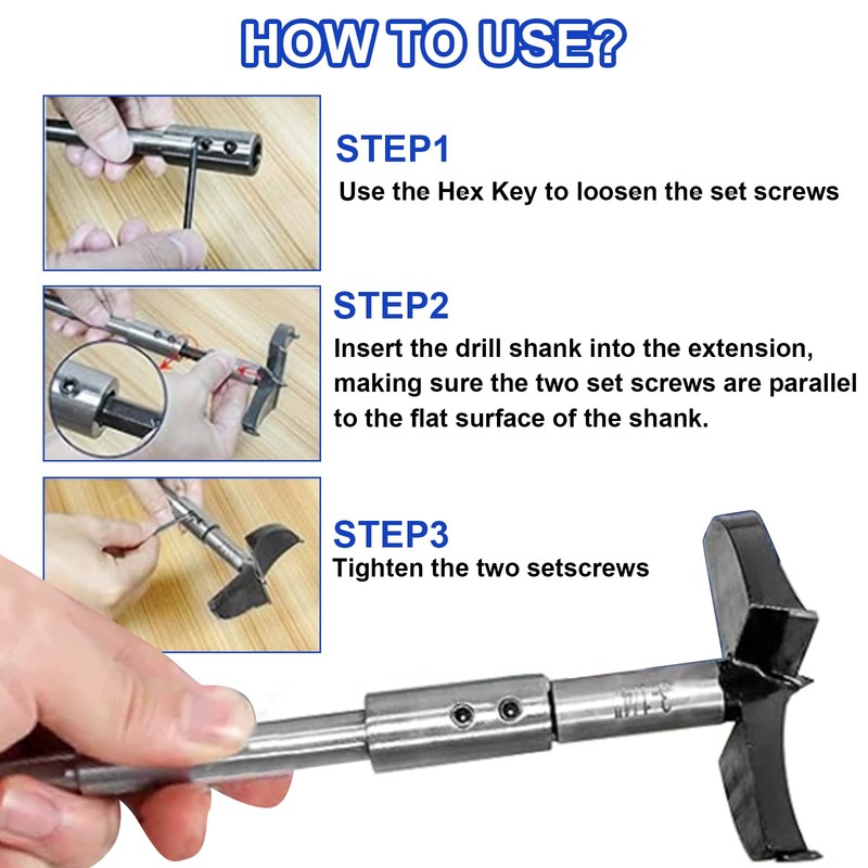 - Value Set: 7" Forstner Bit Extension Set,1PCS Forstner Bit Extension (5-3/4" Drilling Depth) +1PCS hex key.