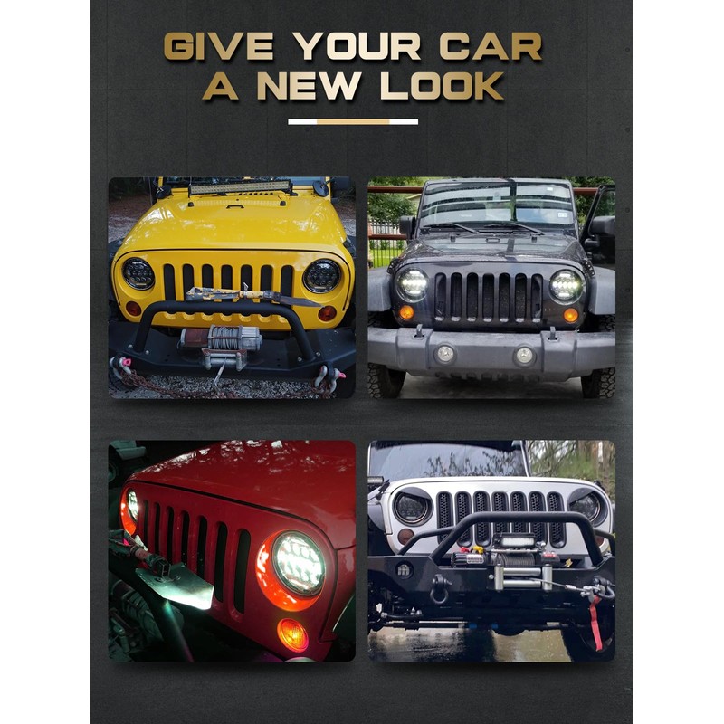 Vehicle Service Type:The 7 Inch LED Headlights are compatible with Jeep Wrangler TJ 1997-2006;compatible with Jeep Wrangler LJ Unlimited 2004-2006;compatible with Jeep Wrangler JK JKU 2 & 4 Doors 2007-2017;compatible with1976-1986 CJ-7, 1981-1985 CJ-8 Scrambler,replace for #6024,6014,H6024,H6014 and all vehicles with 7" round headlights