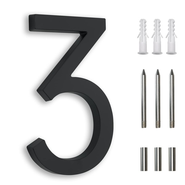 7 Inch Modern House Numbers outside,Street Metal Black Large House Numbers Door Numbers For House Address Numbers For House Numbers For Address On House Floating Flush Mount Zinc Alloy Black Number 3