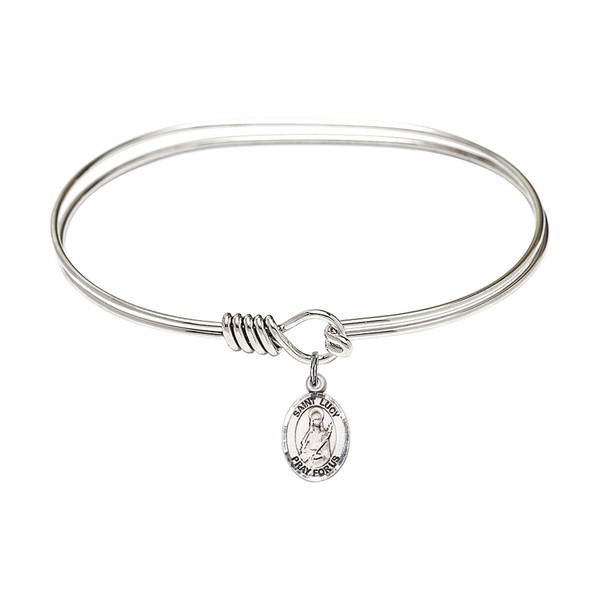 - 7 inch Oval Eye Hook Bangle Bracelet with a St. Lucy charm.