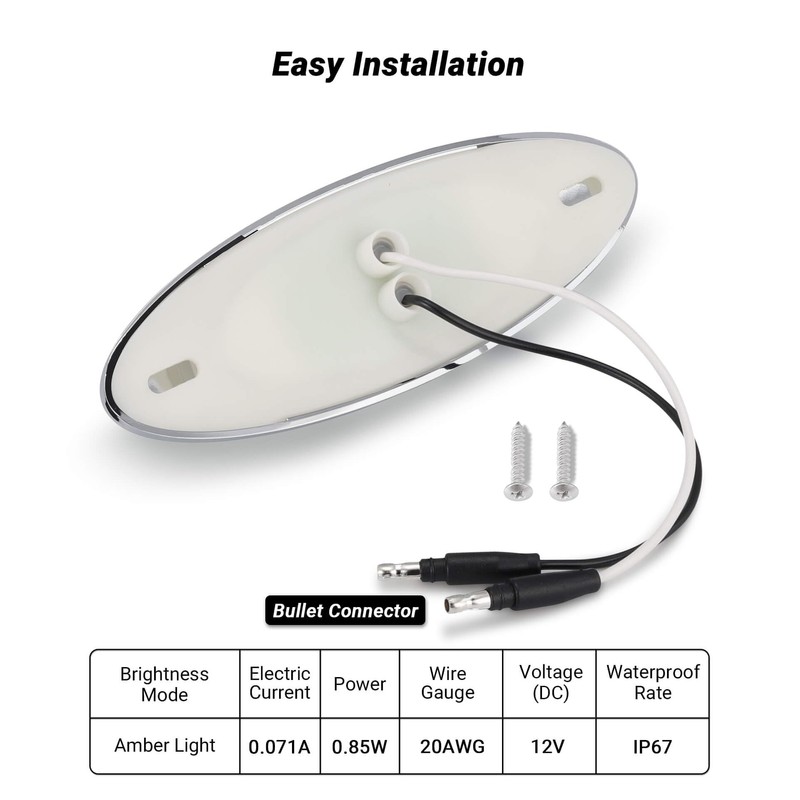 - Easy Installation. Equipped with bullet connectors for a hassle-free, plug-and-play setup. These versatile lights allow for complete customization, letting you mount them anywhere you need. They can function as solid running lights or blinkers. Commonly installed on cab and sleeper kits, bumpers, fender guards, and more.