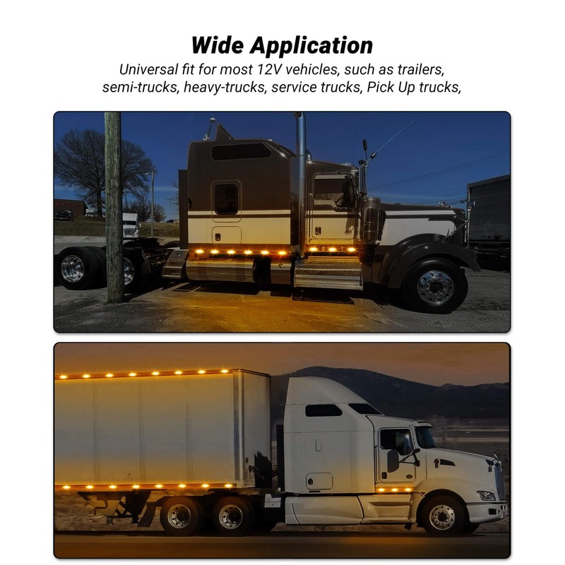 - Super Bright. Each marker light is equipped with 16 high-intensity LEDs, delivering exceptional brightness. These bright lights ensure clear visibility both day and night, making them ideal for use as side markers, clearance lights, turn signal lights, and running lights.