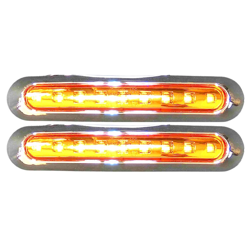 • Red/Amber 9 LED, 7.1" Oval Light Bar Style, Chrome Bezel Side Marker Clearance Lights