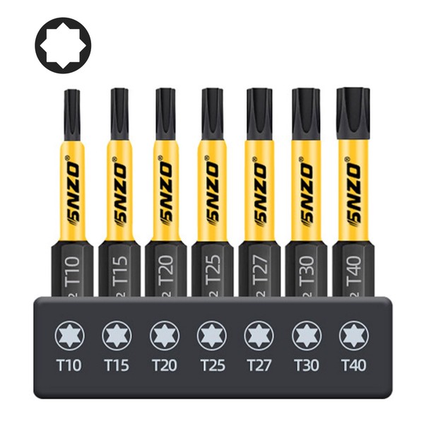 S2 alloy steel :The 7pcs torx bits set is made of excellent S2 alloy steel ,with sturdy hardened and tempered construction. Increase bit power and reduce fracture.