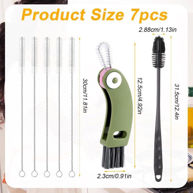 - Practical Dimensions: The straw brush measures 11.81 inches (30cm), the cup lid brush is 4.92 x 0.91 inches (12.5 x 2.3cm), and the bottle brush measures 12.4 x 1.13 inches (31.5 x 2.88cm), ensuring versatility for a variety of cleaning needs.