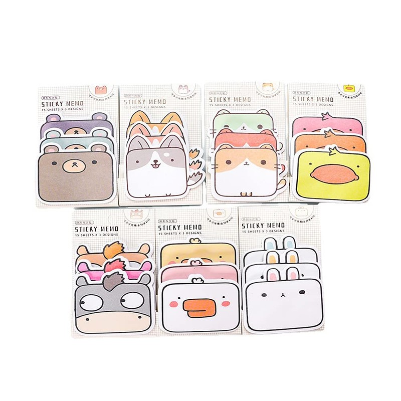 - 【Package Contents】 After purchasing, you will get 7 kinds of cute animals sticky notes with different specifications. Their shapes are bear, dog, cat, duck, donkey, chicken, rabbit.