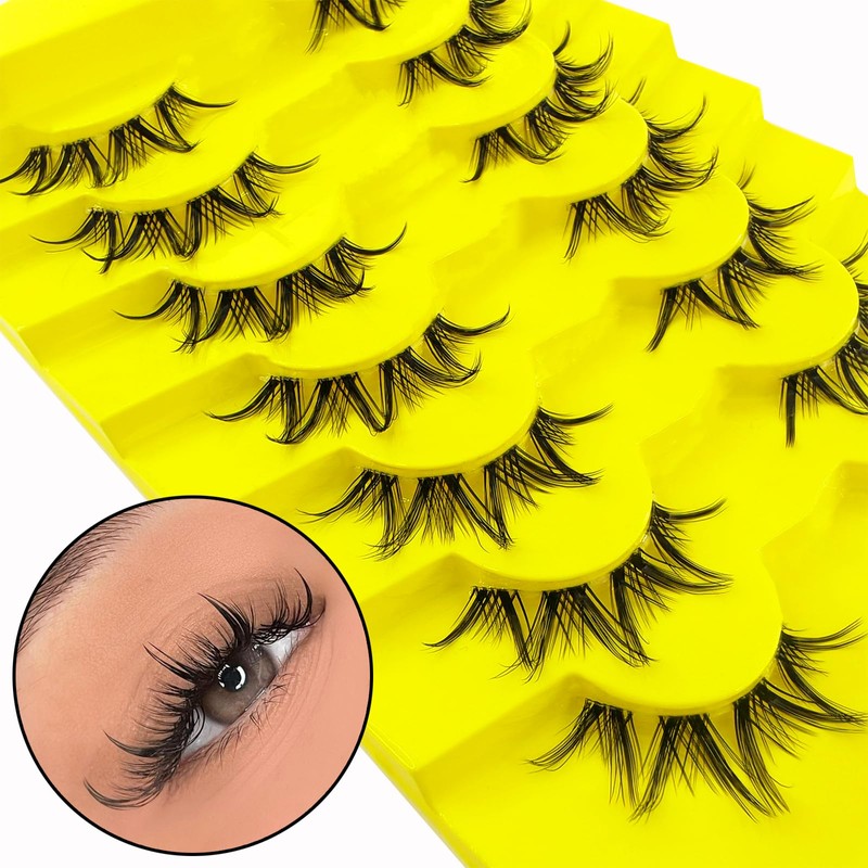 7 Pairs Clear Band False Eyelashes, Cat Eye, Natural Artificial Eyelash Extensions, Fox Eye, Artificial Cluster Eyelashes, Natural Look, Reusable, Lightweight Faux Mink Eyelashes (09)