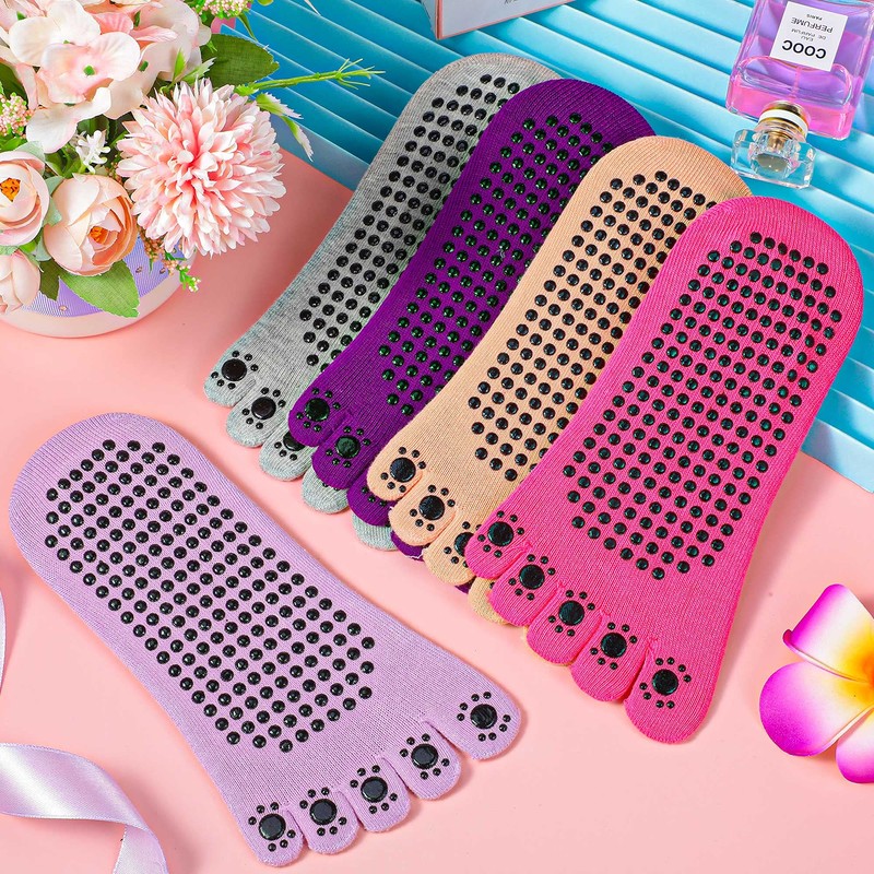 7 Pairs Yoga Socks Women Full Toe Sock Non Slip Sticky Gripper Socks with Strap