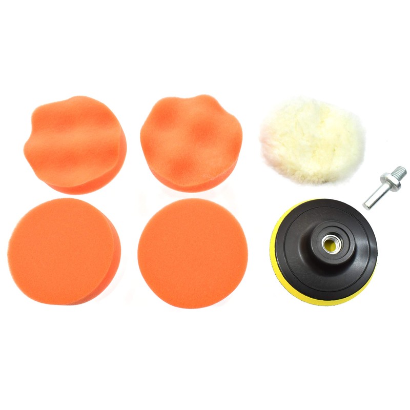 • Includes: 2 x Orange waffle pad 1 x Woolen buffer pad 2 x Orange flat buffer pad 1 x 5/8" Thread and a 1/4" drill shank adapter for backing plate 1 x 5/8" Thread for angle grinder