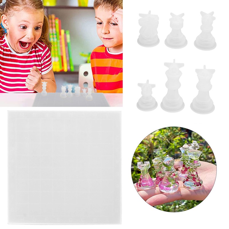 7 Pcs Chess Molds Flexible Reusable Easy Demoulding DIY Epoxy Resin Silicone Mold for Making Chess Set