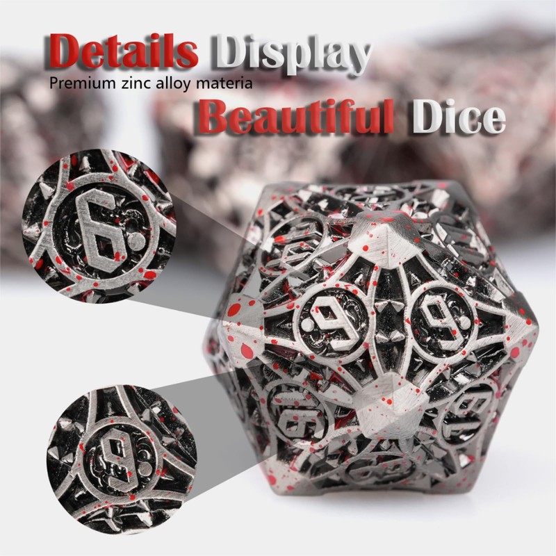 - Excellent Craftsmanship - The metal DND dice set is made of zinc alloy material,rigorously polished, with unique patterns that give it great character,the thick feel and smooth rolling make you feel like you are casting magic in your hands
